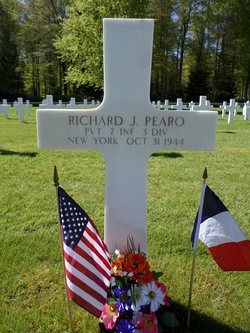Pvt Richard J. Pearo attended high school for one year and was a messenger boy employed by the S. Porter - Cable Machinery Company.He enlisted in Syracuse, New York on 4 August 1943.