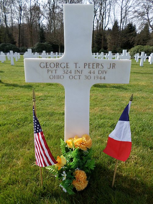 Pvt George T. Peers Jr. graduated from Shaw High School in January 1940 and attended Ohio Wesleyan College.He joined the U.S. Army Reserve at Fort Hayes, Ohio on 8 October 1942. He was selected for the Army Specialized Training Program (A.S.T.P.) and studied at the University of Nebraska. He was sent overseas in September 1944.
