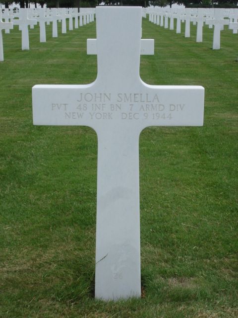 Private John Smella was previously wounded in France but had rejoined his outfit. He suffered fatal wounds December 6th in Linnich, Germany and died 3 days later. Pvt Smella, former resident of Lansford, entered the service in March, 1944 and went overseas in September. He had been employed at Radio City, New York.Source of information: NARA, www.wwiimemorial.com, www.ancestry.com - Social Security Death Index, www.newspapers.com - The Morning Call