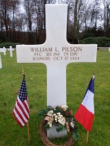 Pfc William L. Pilson was employed at the Chicago Wilmington & Franklin Coal Company in Illinois before he enlisted.Source of information: Peter Schouteten, www.abmc.gov, www.wwiimemorial.com - Orville L. Kline, www.ancestry.com - Headstone and Interment Record / U.S. WWII Draft Cards Young Men / Tedrow Family Tree, Combat History 79th Infantry Division WWII