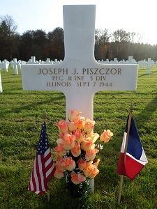 Pfc Joseph J. Piszczor attended high school for two years and was employed at Cordvan Manufacturing.He was initially buried at the Champigneul Cemetery in Chalons sur Marne, France.