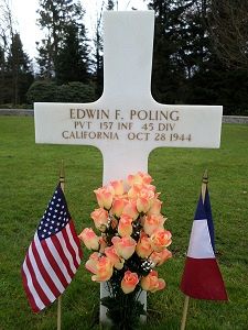 Pvt Edwin F. Poling attended high school for 3 years and was a plumber before he enlisted in San Francisco, California on 21 December 1943.Source of information: Peter Schouteten, www.abmc.gov, www.wwiimemorial.com, www.archives.gov – WWII Enlistment Record, www.ancestry.com - Headstone and Interment Record / Bartholomew Family Tree, http://www.45thdivision.org