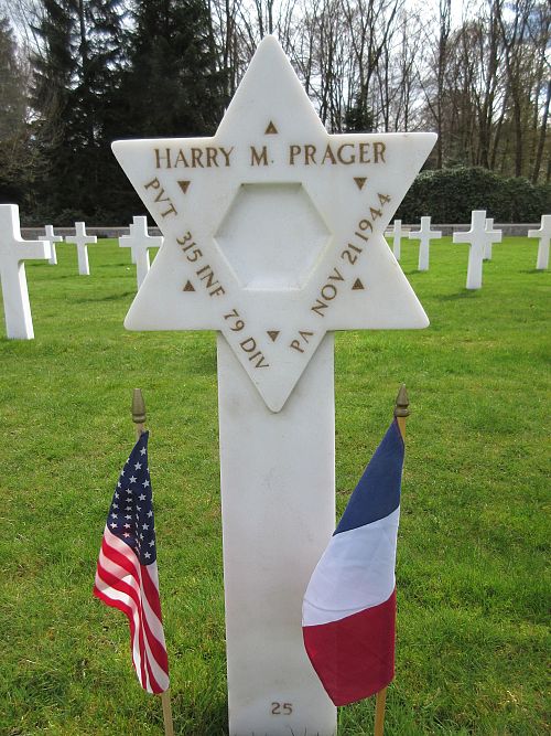 Pvt Harry M. Prager attended high school for four years and was a sales clerk before he enlisted at Fort George G. Meade, Maryland on 23 March 1944.He was killed by artillery shell fragments.