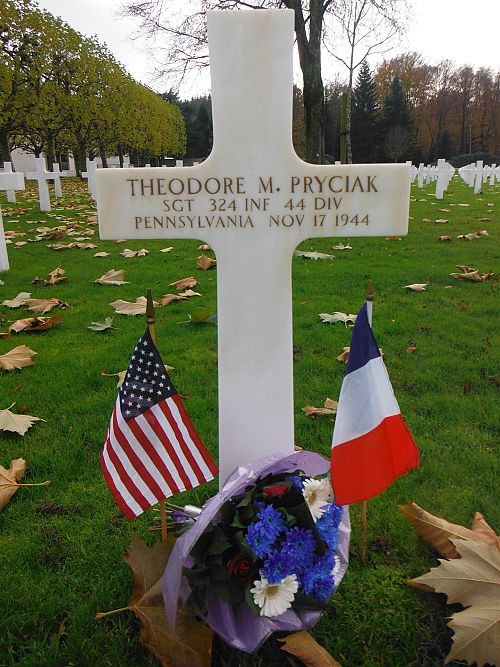 Sgt Theodore M. Pryciak attended high school for four years and was a miner before he enlisted in Allentown, Pennsylvania on 22 February 1943. He was sent overseas in October 1944.He was killed by artillery shell fragments.