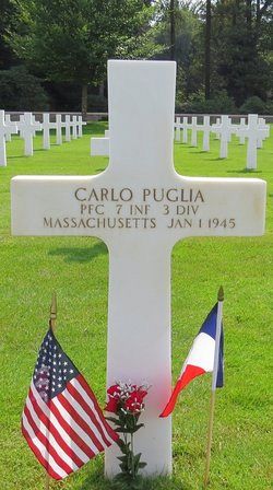 Pfc Carlo Puglia attended high school for four years and was a sharpener employed at the Watertown Arsenal.He enlisted in Boston, Massachusetts on 5 April 1943.