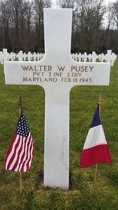 Pvt Walter W. Pusey attended Maryland Park High School for two years and was an office clerk employed by the McGee Garfinckel's Co.He enlisted in Baltimore City, Maryland on 25 July 1944.