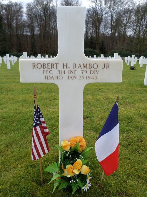 Pfc Robert H. Rambo Jr. worked on a farm before he enlisted in Boise, Idaho on 21 December 1943. He was sent overseas in 30 August 1944.He was killed by small arms fire.