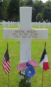 Pfc Frank Risley enlisted at Fort Hayes, Ohio in April 1943.He attended Athens School. After entering service he went to Fort Benning, Georgia and Camp Shanks, New York before going oversees to England and France.