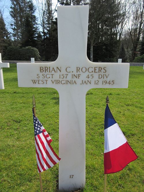 S/Sgt Brian C. Rogers attended high school for 4 years and was a mechanic and repairman before he enlisted in Huntington, West Virginia on 15 April 1941.He was killed by sniper fire in the Battle of Reipertswiller, France.
