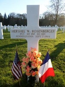Pvt Herschel W. Rosenberger worked as a newspaper carrier before he enlisted in Pittsburg, Pennsylvania on 20 March 1943.Source of information: Leo Minne, www.abmc.gov, www.wwiimemorial.com, www.ancestry.com - 1930/1940 Census / Headstone and Interment Record / U.S. Draft Cards Young Men / U.S. School Year books, www.80thDivision.com