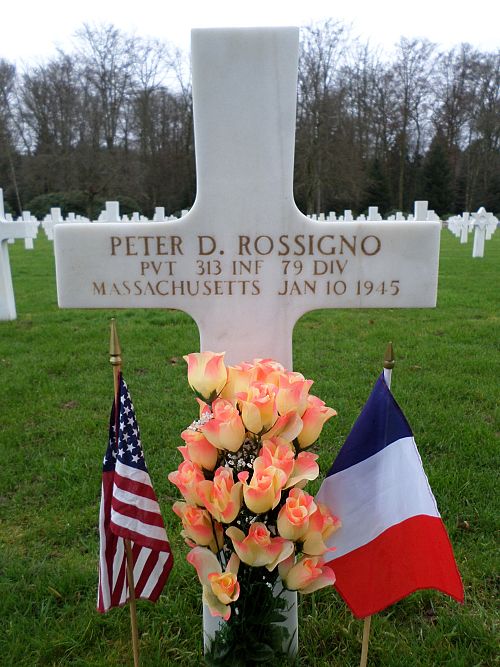 Pvt Peter D. Rossigno attended high school for two years and was employed at the Watertown Arsenal before he enlisted in Boston, Massachusetts on 10 February 1943.He was killed by artillery shell fragments in his chest.