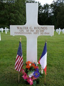 Cpl Walter G. Rounds enlisted in Erie, Pennsylvania on 9 July 1942.Source of information: Leo Minne, www.abmc.gov, www.wwiimemorial.com, www.ancestry.com - 1930/1940 Census / U.S. Headstone and Interment Record / U.S. Draft Cards Young Men, www.findagrave.com, www.80thDivision.com