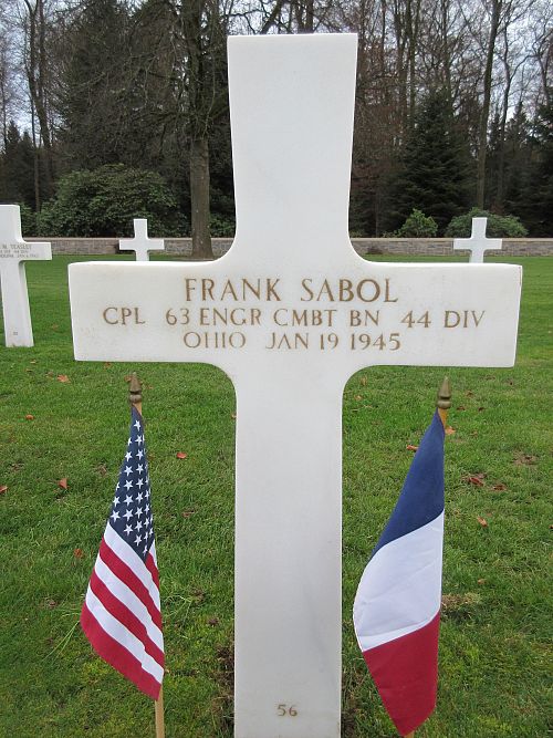 Cpl Frank Sabol attended high school for two years and was employed at the Follansbee Steel Corporation Toronto, Ohio before he enlisted in Akron, Ohio on 9 February 1943.He was killed by artillery shell fragments in his stomach.