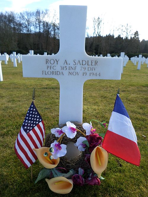 Pfc Roy A. Sadler worked on a farm before he enlisted at Camp Blanding, Florida on 9 July 1943.He was killed by artillery shell fragments in his thigh.