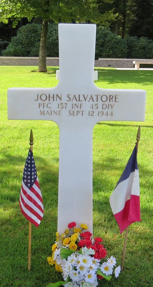 Pfc John Salvatore attended Portland High School for 2 years before he enlisted in Portland, Maine on 24 May 1943.He was first buried at the Temporary American Military Cemetery in Saint-Juan, France.