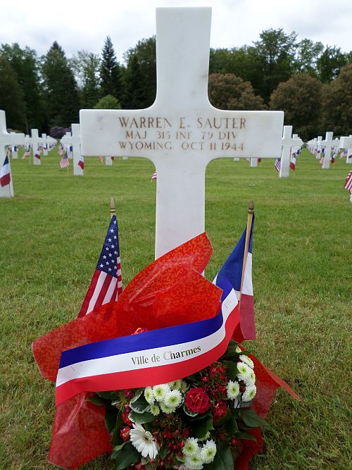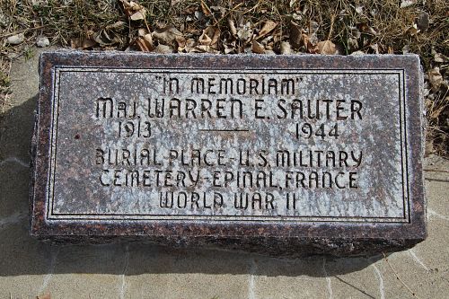 Maj Warren E. Sauter attended Wyoming University and graduated from law school. Following graduation he entered the service of the Federal Bureau of Investigation where he served until he entered the armed forces.He was seriously wounded in action in France on 9 October 1944 and died on 11 October 1944.