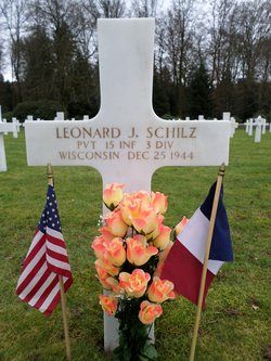 Pvt Leonard J. Schilz was a chauffeur before he joined the Regular Army in Milwaukee, Wisconsin on 15 October 1940.In August 1943, in Sicily, he was wounded by artillery shell fragments.