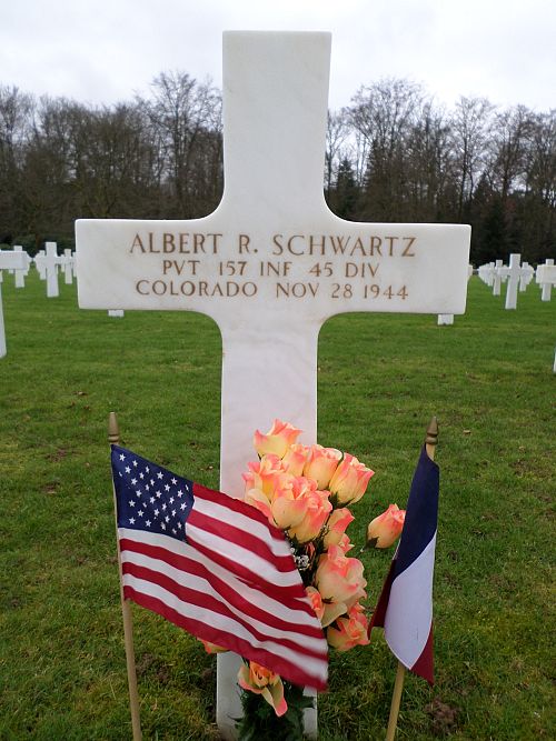 Pvt Albert R. Schwartz attended high school for 1 year and worked on a farm before he enlisted in Fort Francis E Warren Cheyenne, Wyoming on 22 December 1943.Source of information: Peter Schouteten, www.abmc.gov, www.wwiimemorial.com, www.archives.gov – WWII Enlistment Record, www.ancestry.com - Headstone and Interment Record / Douglas Harris Family Tree / King Family Tree / 1940 Census, http://www.45thdivision.org