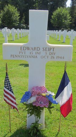 Pvt Edward Seipt graduated from William Penn Charter School in 1930 and had a post graduate degree. He was a salesman before he enlisted in Allentown, Pennsylvania on 12 May 1943. He was sent overseas in July 1944.He was killed by artillery shell fragments.