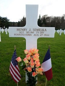 Sgt Henry J. Semelka was employed at the Erie Malleable Iron Company before he enlisted in Erie, Pennsylvania on 6 June 1942.He was first buried at the Temporary American Military Cemetery in Solers, France.