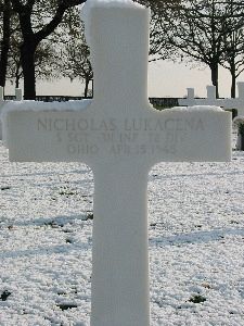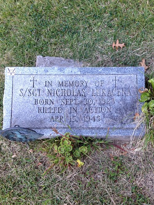 Nicholas Lukacena enlisted at Fort Hayes, Ohio on 17 March 1943.Three of his brothers also served. Joseph and Frank Lukacena were both wounded in action. John Lukacena is buried at Normandy American Cemetery.
