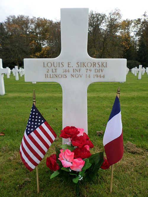 2nd Lt Louis E. Sikorski attended high school for four years and was a clerk before he enlisted in Chicago, Illinois on 23 July 1941.Source of information: Peter Schouteten, www.abmc.gov, www.wwiimemorial.com – Lilian Gardner, www.archives.gov – WWII Enlistment Record, www.ancestry.com - Headstone and Interment Record / U.S. WWII Draft Cards Young Men / 1940 Census / Cook County Illinois Marriage Index, Combat History 314th Infantry Regiment, www.findagrave.com – Albert Ledoux / Bruce Weirauch