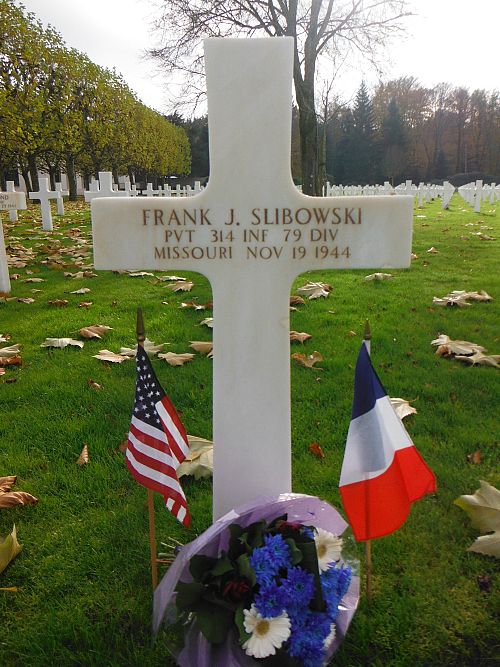Pvt Frank J. Slibowski was employed at the Missouri District Civilian Conservation Corps before he joined the National Guard in Boonville, Missouri on 25 November 1940. He was sent overseas in April 1944.He was killed by artillery shell fragments in his chest.