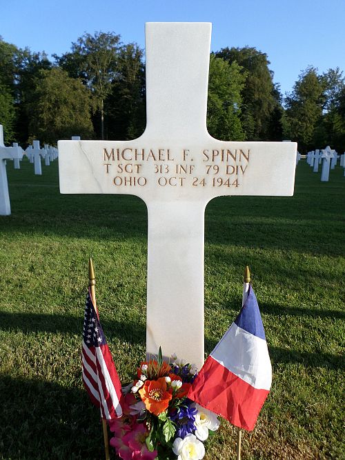 T/Sgt Michael F. Spinn attended high school for one year and was employed at the Cleveland Union Terminal before he enlisted in Cleveland, Ohio on 11 June 1942.He was killed by artillery shell fragments.