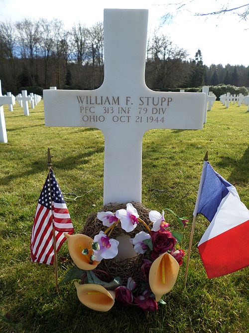 Pfc William F. Stupp was a cleaner before he enlisted in Columbus, Ohio on 13 May 1943. He was sent overseas in November 1943.He was killed by artillery shell fragments to his back.