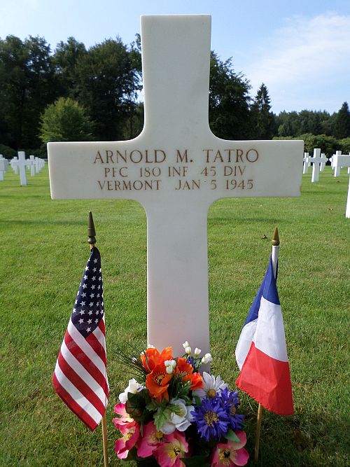 Pfc Arnold M. Tatro enlisted in Rutland, Vermont on 16 December 1943.He was seriously wounded in action on 4 January 1945.