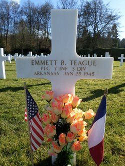 Pfc Emmett R. Teague worked in the shipping department of a saw mill.He was killed by small arms fire in the neck.