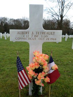 Leader of a patrol team in Italy, 2nd Lt Tetreault exposed himself for fifteen minutes to intense grazing machine gun fire and 50 mm mortar fire when he left the safety of a shell hole and crawled forward to reach a seriously wounded comrade whom he dragged to safety. He was awarded with a Bronze Sta rMedal for this action.