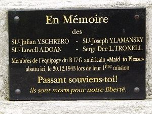 Four crew members were killed and buried at the cemetery of Pontoise, France, on 4 January 1944.