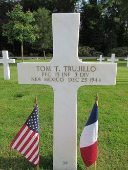 Pfc Tom T. Trujillo was a construction worker before he enlisted in Santa Fe, New Mexico on 29 November 1942. He was sent overseas in June 1944.He was killed by small arms fire in the kidneys.
