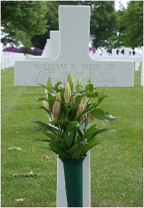 The citation of his Distinguished Service Cross stated: "The President of the United States takes pride in presenting the Distinguished Service Cross (Posthumously) to William R. Weir, Jr. (0-303310), Captain (Infantry), U.S. Army, for extraordinary heroism in connection with military operations against an armed enemy while serving with Company L, 387th Infantry Regiment, 97th Infantry Division, in action against enemy forces on 15 April 1945. Captain Weir's outstanding leadership, personal bravery and zealous devotion to duty at the cost of his life, exemplify the highest traditions of the military forces of the United States and reflect great credit upon himself, the 97th Infantry Division, and the United States Army."