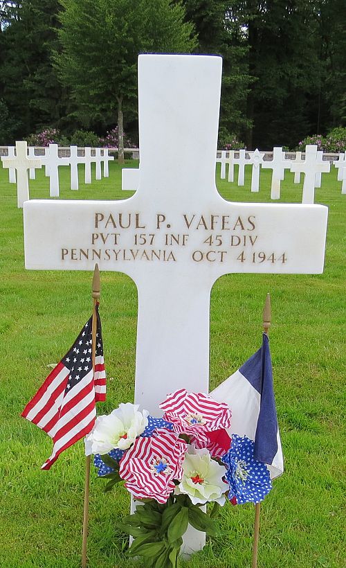 Source of information: Peter Schouteten, www.abmc.gov, www.wwiimemorial.com, www.archives.gov – WWII Enlistment Record, www.ancestry.com - Headstone and Interment Record / U.S. WWII Draft Cards Young Men / Vafeas Family Tree, http://www.45thdivision.org