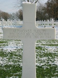 Pfc Alphonse Fleury enlisted in Springfield, Massachusetts on 7 March 1941. He worked in the Armory at Springfield before his induction. He was a member of the National guard and went overseas in February 1944.On 20 December, CCB launched its attack to clear the towns Untermaubach and Obermaubach and pockets to the South and Southeast to the Roer River. Pfc Fleury was killed during the First Army drive for the Roer in Winden, Germany, by a German sniper's bullet.