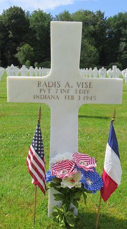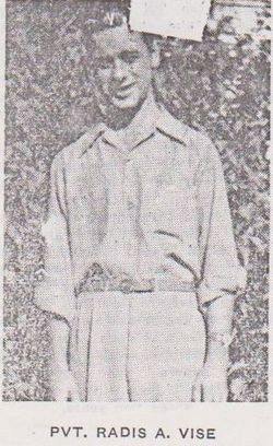Pvt Radis A. Vise graduated from the Garrett High School and was a brakeman employed by the B&O Company.He enlisted in Indianapolis, Indiana on 17 August 1944 and had his training at South Camp Hood, Texas and at Fort Meade, Maryland. He was sent overseas on 1 January 1945.