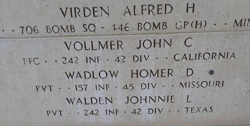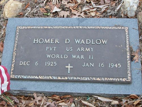 Pvt Homer D. Wadlow enlisted at Jefferson Barracks, Missouri on 18 April 1944.He was officially declared death one year and one day after he was reported missing in action. At that time his unit was fighting in the vicinity of Mouterhouse, France.