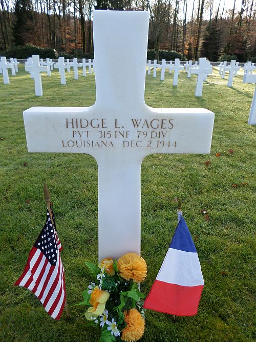 Pvt Hidge L. Wages attended high school for one year and was a cook before he enlisted at Camp Beauregard, Louisiana on 12 May 1944.Source of information: Peter Schouteten, www.abmc.gov, www.wwiimemorial.com, www.archives.gov – WWII Enlistment Record, www.ancestry.com - Headstone and Interment Record / U.S. WWII Draft Cards Young Men / Lorie Womack Family Tree, Combat History 79th Infantry Division, www.findagrave.com - Coleman