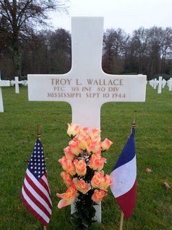 Pfc Troy L. Wallace worked on a farm before he enlisted at Camp Shelby, Mississippi on 17 July 1942.He was seriously wounded in action on 7 September when G Company was attacking the ForĂȘt de l'Avant Garde in the vicinity of Pompey, France.