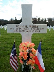 Pvt John H. Wehry was employed in the accounting department of General Motors in Detroit.He was first buried at the Temporary American Military Cemetery of Solers, France.