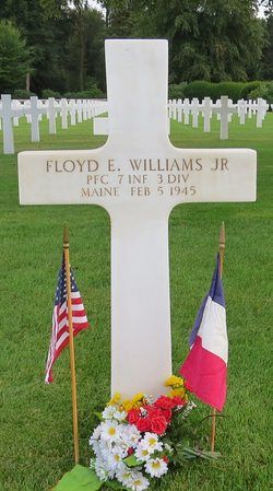 Pfc Floyd E. Williams enlisted in Bangor, Maine on 2 March 1943.In January 1944, he was wounded in action in Italy by machine gun fire at the elbow. He was hospitalized until August. After he returned to his unit, he was wounded again by a land mine explosion in August 1944 and had to stay in the hospital until September.