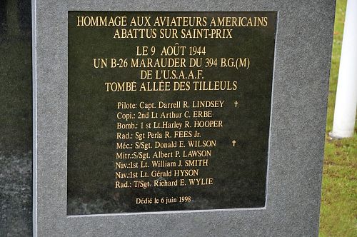 The airplane was hit by flak just after bombs away setting fire to the right engine and the crew bailed out. The aircraft then entered a step glide and was enveloped in flames thirty seconds later at 8,000 ft. It rolled over, dived into the ground and exploded at 2000 hrs at Villa des Peupliers at Saint-Prix, about seven miles southeast of Pontoise, France.