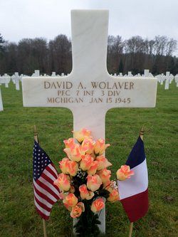 Pfc David A. Wolaver graduated from Ann Arbor High School in 1942 and attended University of Michigan for a semester.He enlisted in Kalamazoo, Michigan on 26 April, 1943.
