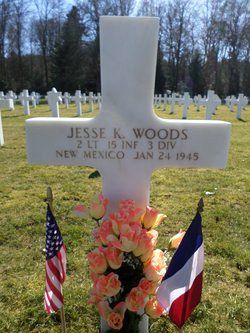 2nd Lt Jesse K. Woods was a truck driver employed by John Davenport in Las Cruces, New Mexico before he enlisted at Fort Bliss, El Paso, Texas on 1 December 1942.Source of information: Leo Minne, www.abmc.gov, www.wwiimemorial.com, www.ancestry.com - Headstone and Interment Record / 1930/1940 Census / U.S. WWII Draft Cards Young Men / U.S. WWII Hospital Admission Cards, History 3rd Infantry Division WWII