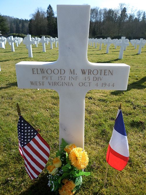 Pvt Elwood M. Wroten enlisted in Huntington, West Virginia on 27 November 1943.Source of information: Peter Schouteten, www.abmc.gov, www.wwiimemorial.com, www.archives.gov - WWII Enlistment Record, www.ancestry.com - Headstone and Interment Record, http://www.45thdivision.org, www.findagrave.com - Algeo