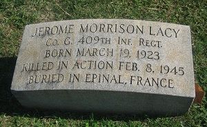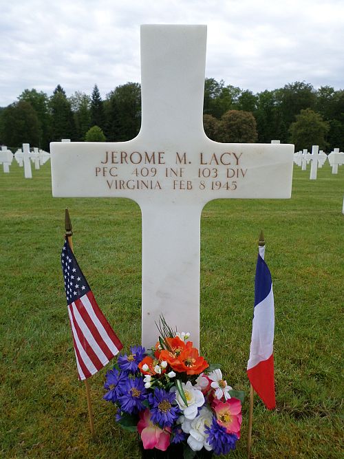 Pfc Jerome M. Lacy enlisted in Charlottesville, Virginia on 8 January 1943.Picture of Marker is taken on Holy Cross Cemetery, Lynchburg City, Virginia.