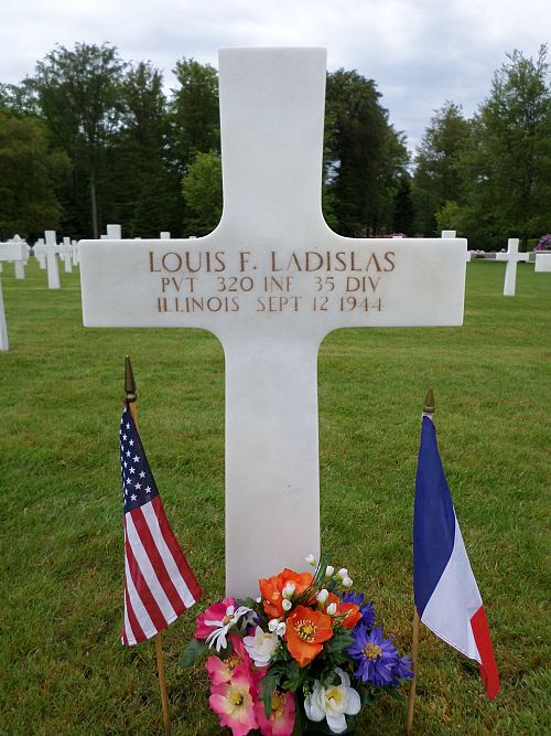 Pvt Louis F. Ladislas attended high school for four years and was employed at the Perfection Gear Company before he enlisted at Camp Grant, Illinois on 14 March 1942.He was first buried at the Temporary American Military Cemetery in Champigneul, France.