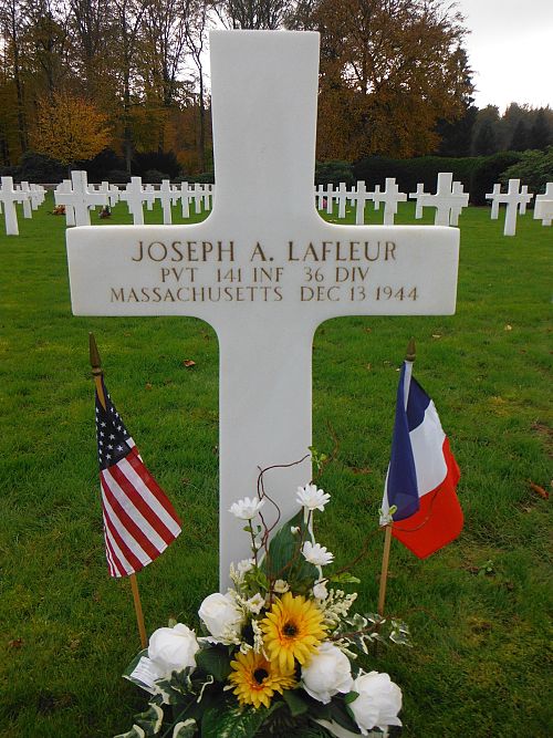 Pvt Joseph A. Lafleur enlisted at Fort Devens, Massachusetts on 10 April 1944.Source of information: André Koch, www.abmc.gov, www.wwiimemorial.com, www.archives.gov – WWII Enlistment Record, www.ancestry.com - 1930/1940 Census / Headstone and Interment Records / U.S. WWII Draft Cards Young Men, https://36th-id.frb.io/